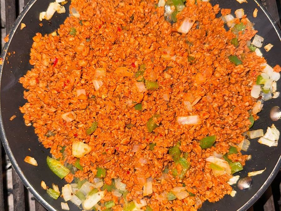 3. Stir in SOYYO Chorizo and cook until browned (5–6 minutes).